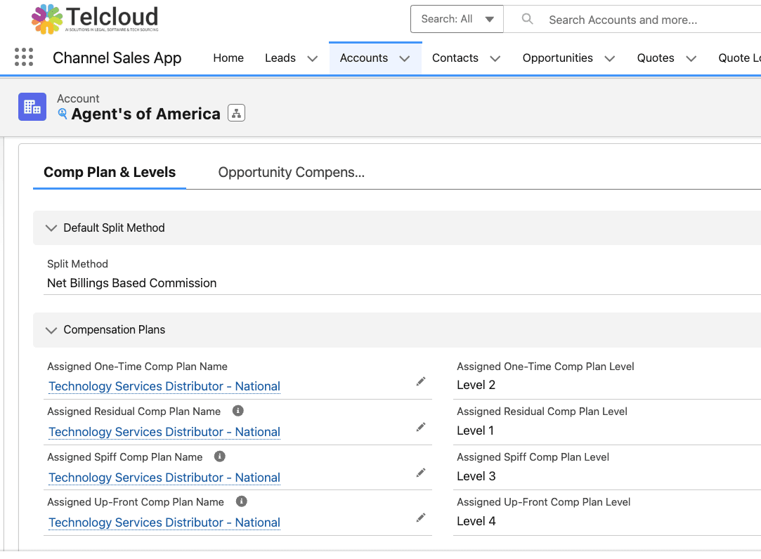 Telcloud Channel Sales App, V9.1 is designed for channel-driven businesses using Salesforce.com. Designed for simplifying the complex processes of businesses selling through W2 direct sales people & 1099 Channel Partners. It's great for handling User and Channel Sales Compensation, Commission & Quotes. Pay Users, Channel Partners & Sub-agents with an unlimited number of Comp plans, billing, commissions and more. Commissions calculated unlimited ways for - Contract Value - One-Time - Residual - Up-Front - Spiffs Suppliers - Calculate & Pay Users & Channel Partners. - Feed billing data in by API, Upload, or Flow - Comp tracked, calculated & displayed right on the Opportunity. - Pay correctly every time. - Reduce Comp disputes. - Improve Profits. History - In the AppExchange since 2012. - 5 Stars Rated. - Telcloud is a faith-based Christian company that endeavours to always do the right thing. let us show you a company with integrity. We treat others as we want to be treated.